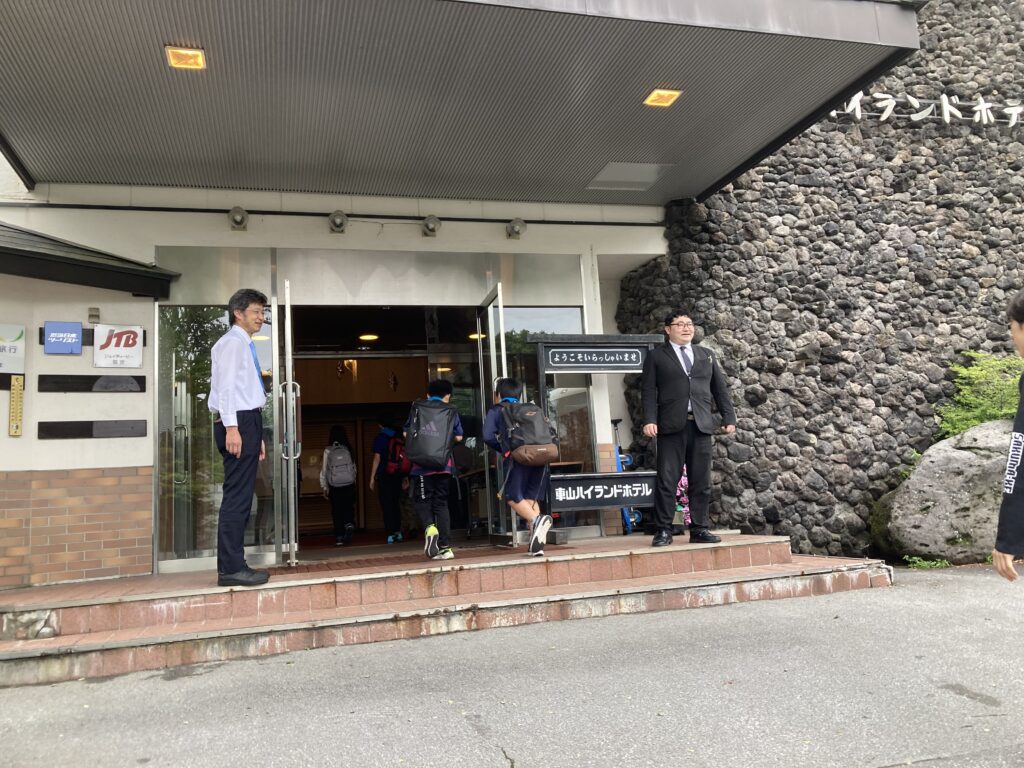黒曜石ミュージアムの玄関前で学級の写真撮影をして15時半にホテルに戻りました。