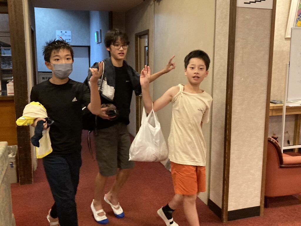 お風呂から出てさわやかな子どもたちです。ホテルのお風呂も最後です。
