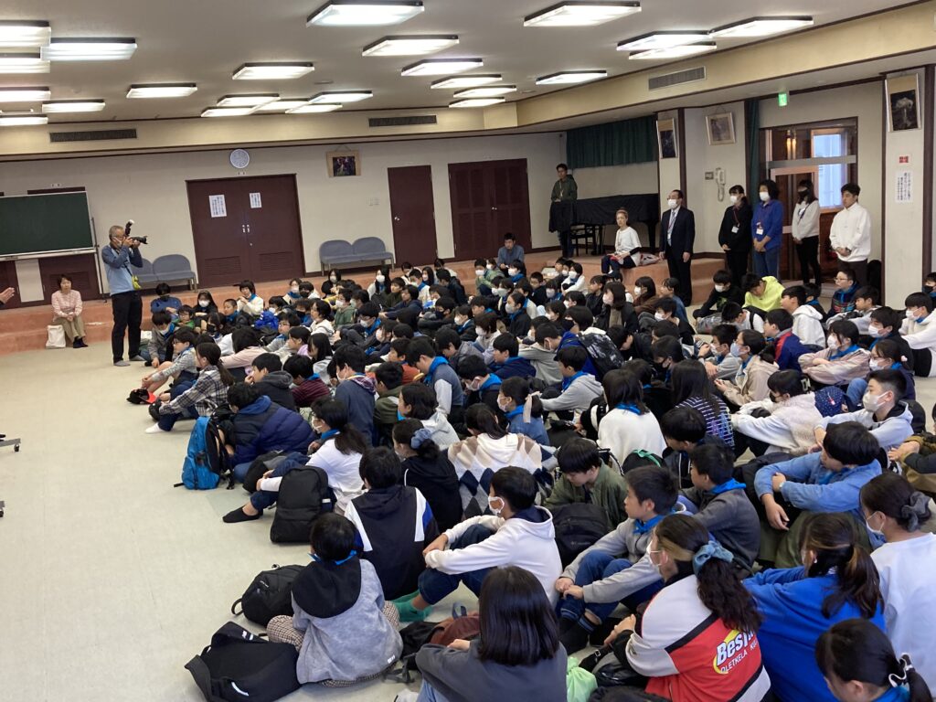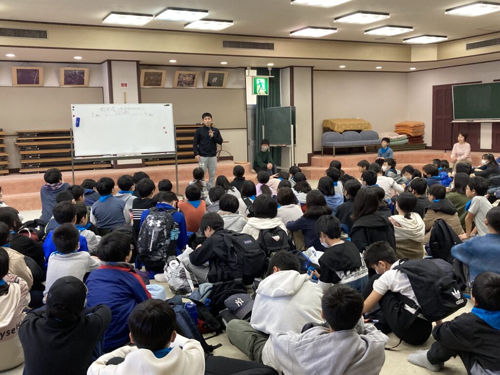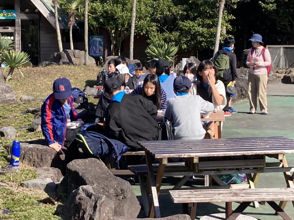 朝食の後、荷物の片付けと部屋の掃除をして、9時から閉校式をしました。みんなてきぱきと仕事を進めていました。9時20分に宿舎を後にしシャボテン公園に向かいました。