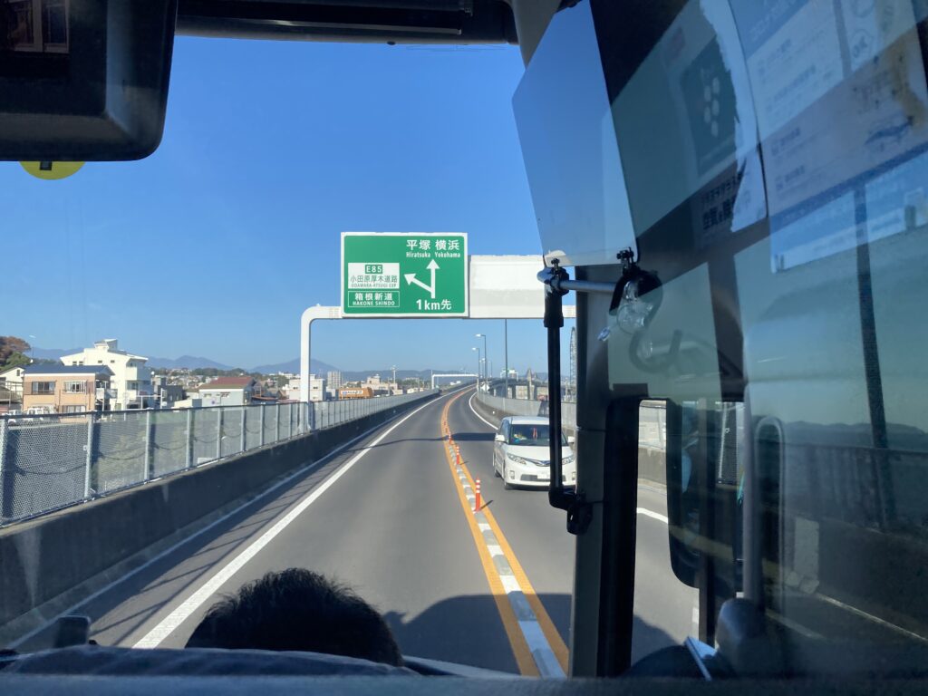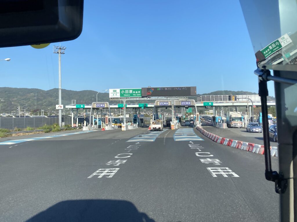 小田原料金所に14時25分に入りました。東名高速厚木〜横浜町田 渋滞9km 15分という表示が見えました。