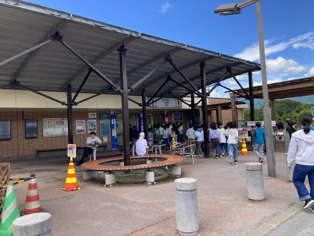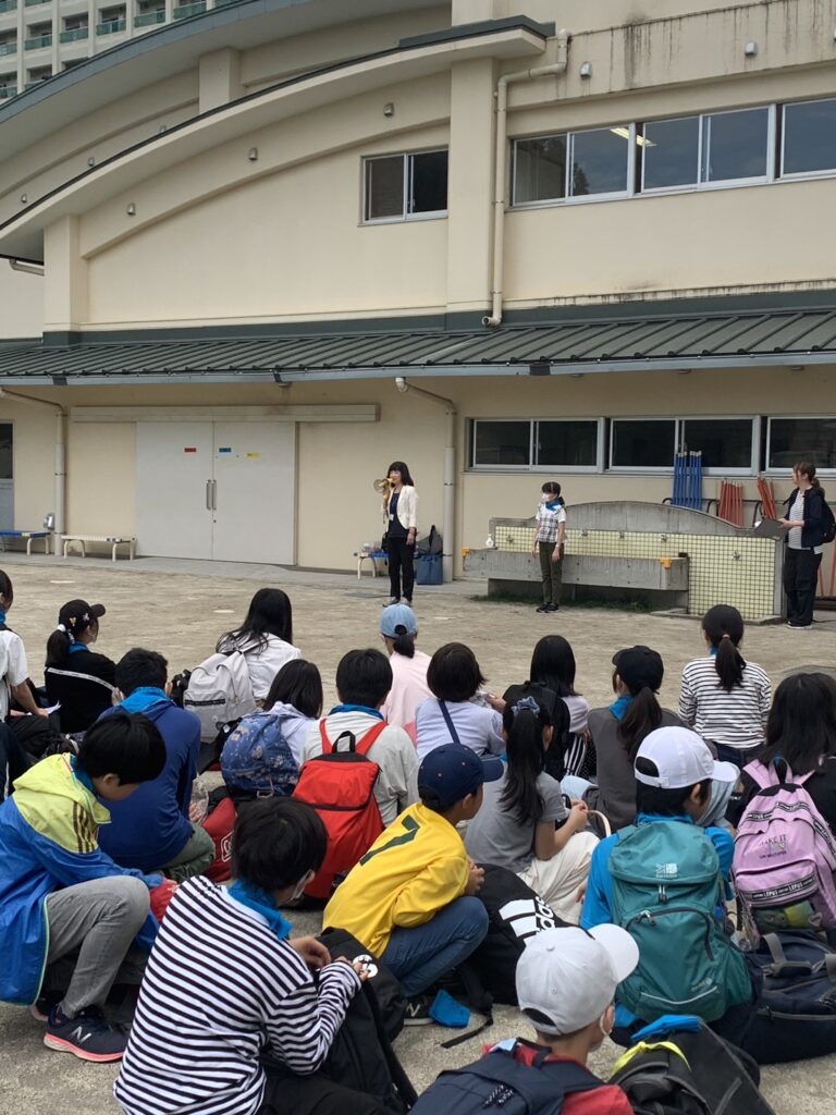校庭で出発式をしました。梅雨入りしましたが、青空の下でのスタートです。7時20分に学校を出ました。これから校長だよりで随時子どもたちの様子を配信していきます。