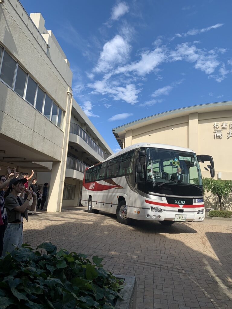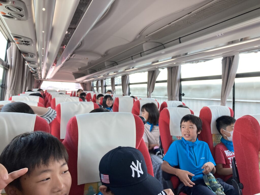 バスの中では、バスレクが始まり子どもたちが楽しく盛り上がっています。