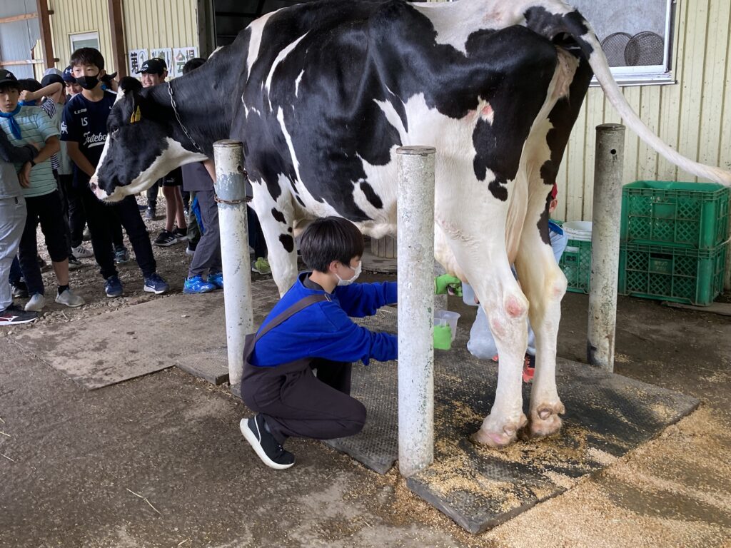 お弁当を食べ、畜産動物とのふれあい体験をしました。