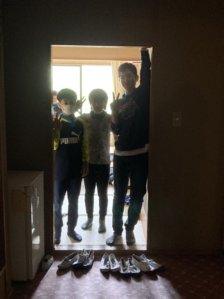 荷物を部屋に入れ、2泊3日の生活班での生活がスタートしました。上履きを揃えていた男子部屋です。