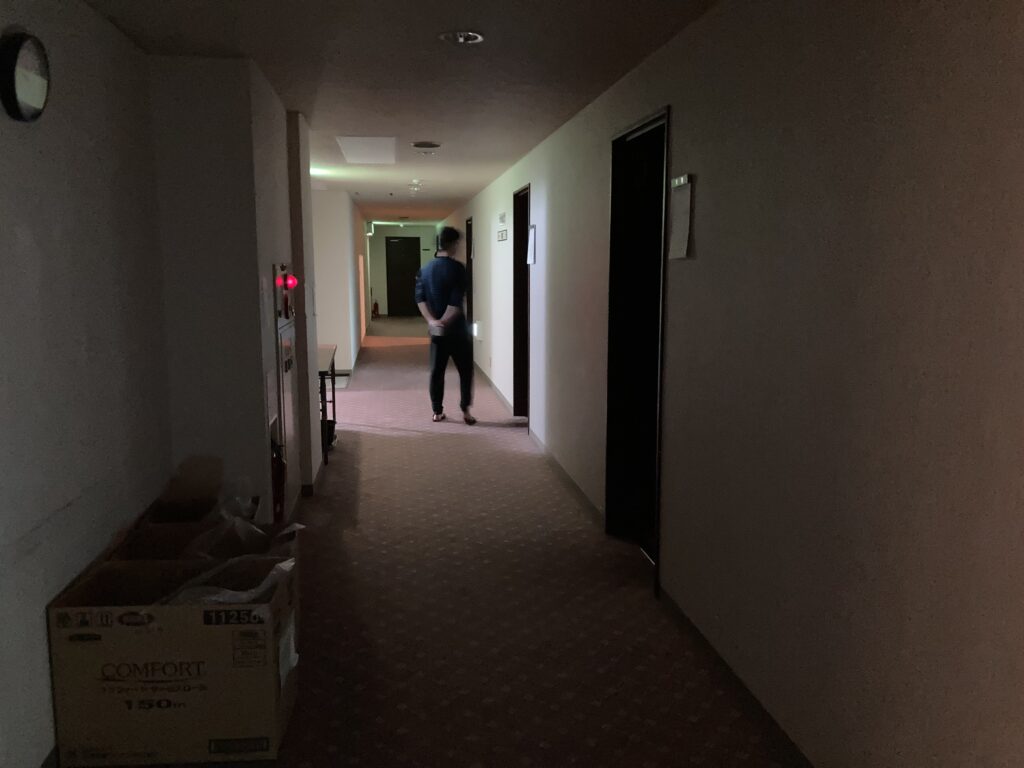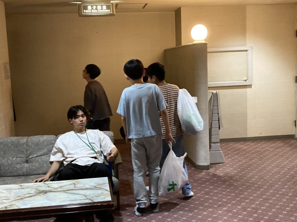 ホテルに戻り、就寝準備です。ホールでは、室長会議が行われていました。