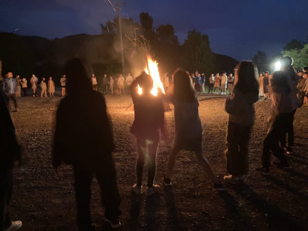 今日の最後のイベントは、キャンプファイヤーです。ホテルの裏手にある広場でレク係が企画、運営した火の神による点火式、ゲーム、踊りと大変盛り上がりました。