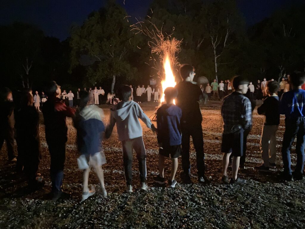 就寝時間になりましたが、まだ、眠るのには時間がかかりそうです。バス酔いをした子もいましたが、キャンプファイヤーには全員元気に参加したくさん楽しんだ一日になりました。明日もいい日になりますように。おやすみなさい。
