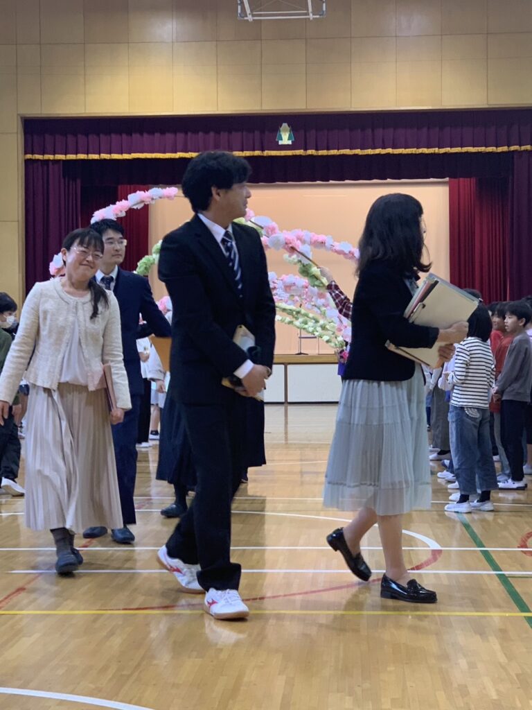 4月25日(金)、昨年度3月に高井戸小を去られた先生方をお招きし離任式を行いました。お忙しい中7人の方がお見えになり子どもたちとのお別れをしました。子どもたちからはお別れの言葉を伝え、お手紙を渡しました。代表の子どもの涙や去られた先生の涙もあり、心のこもった温かい式になりました。