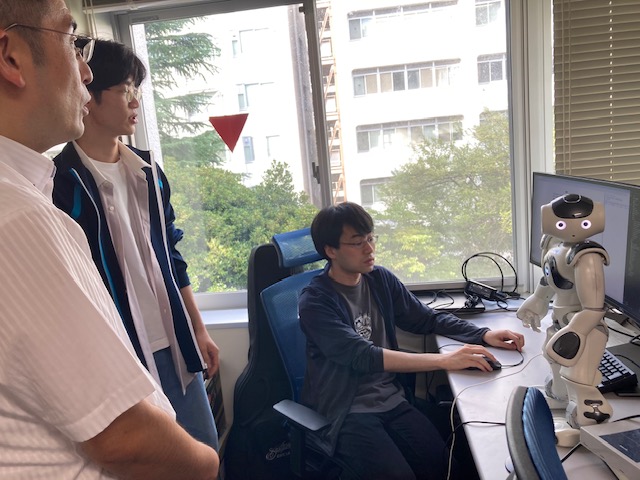 毎年、8月の下旬に先生たちは、電気通信大学の柏原研究室を訪問し、今年度の授業の打ち合わせを行います。柏原研究室の研究も年々進化し、授業サポートの質が高まっています。
