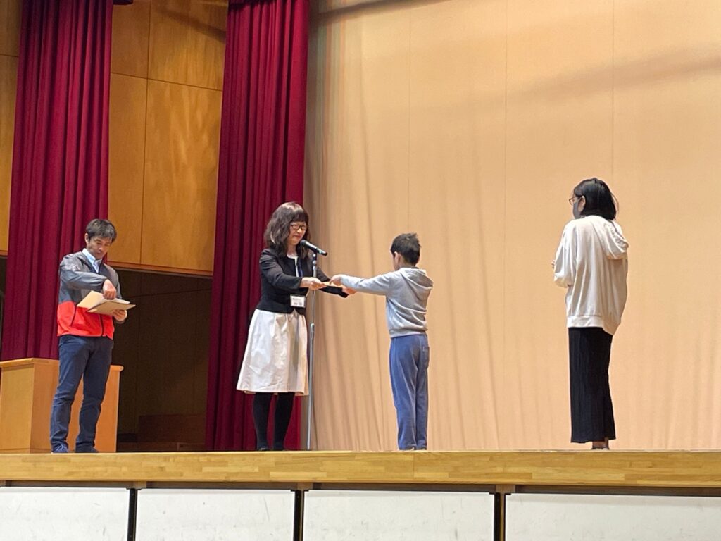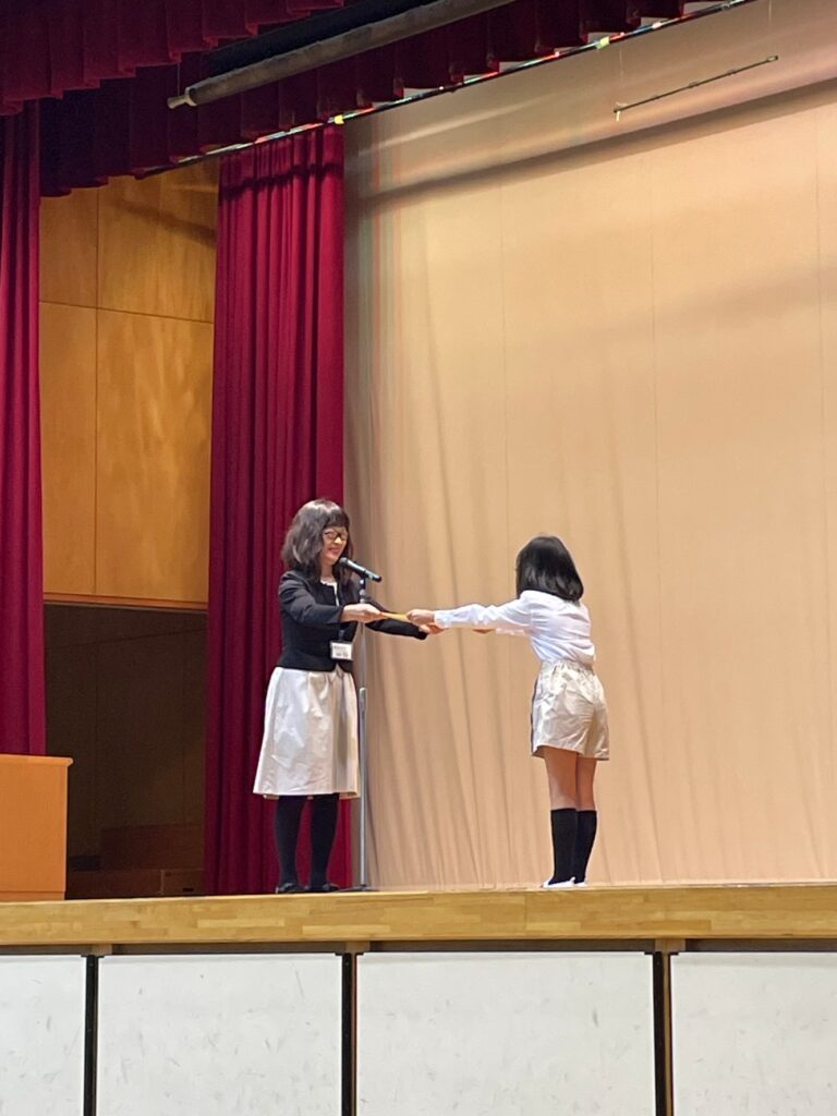 インフルエンザの流行て複数学級の閉鎖が続き全校朝会を延期していました。この日は久しぶりに全校児童が体育館に集まり、朝会を行いました。山田副校長先生の話の後、表彰式を行いました。杉並区善行表彰、児童作曲コンクール表彰、杉並区紙飛行機飛ばし大会表彰など多様なところで頑張った子どもたちが全校の前で賞賛を受けました。