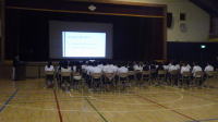 1日目のスクールは、全員頑張っていました。大きなお風呂で疲れをいやし、中にはお風呂で大騒ぎ?した人もいるとそうです。元気が何よりです。夕食も全員揃って「いただきます」ができました。明日も頑張ってください!
