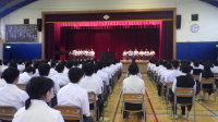 2校時に1学期 終業式を実施しました。運動会をはじめ様々な取組で協力して努力がみられた1学期でした。41日間の夏休みが始まりますが、安全、健康を心掛け、目標をもってやるべきこと、やりたいことに取組み、有意義な夏休みにしましょう。