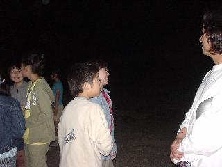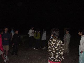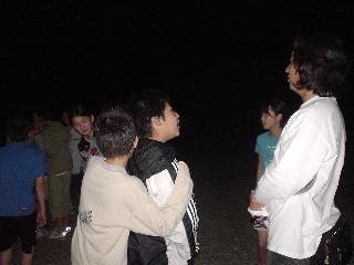 | ナイトハイク 逢の浜までみんなで一緒に行き、帰りは、二人で帰ります。 宿舎でくじ引きをして、ペアを決めました。 |