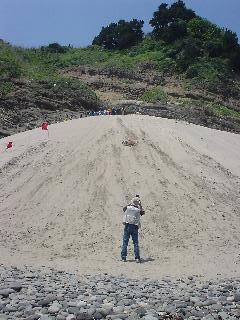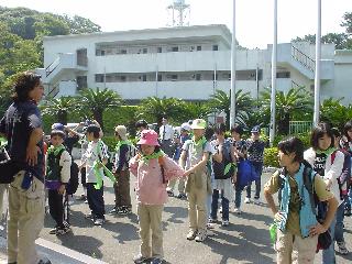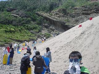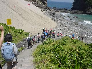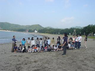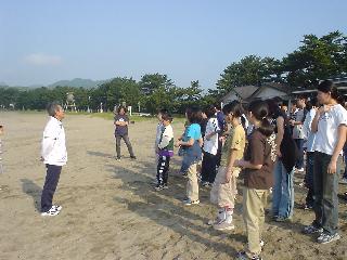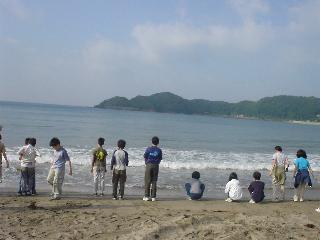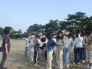| 朝会 弓ヶ浜で行いました。記念写真を撮りました。 | ||