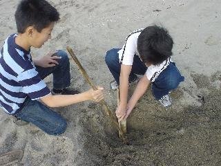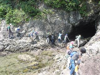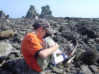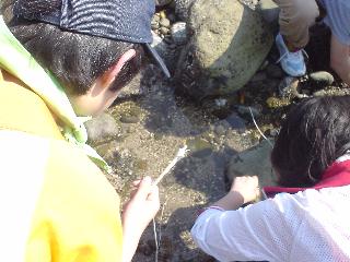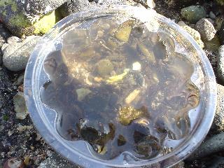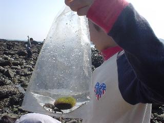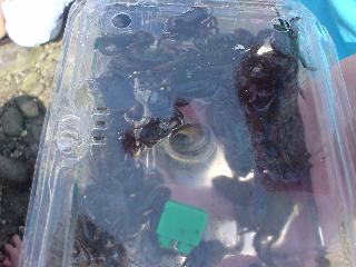 | 逢の浜で磯遊び カニやヤドカリをとりました。 | ||