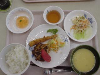 夕食 ハンバーグやエビフライ コーンスープ。 子どもたちの好きなものばかりです。 |
